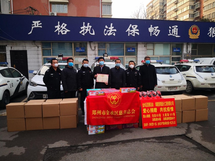 為全力支援新型冠狀病毒疫情防控工作,在疫情防控緊要關(guān)頭, 2020年2月8日下午,正值中國傳統(tǒng)的元宵佳節(jié),鄭州市政協(xié)委員、綠建景觀設(shè)計工程有限公司董事長王建發(fā)帶領(lǐng)公司部分高管,分別慰問了抗擊在疫情戰(zhàn)場一線的鄭州市公安局交通警察支隊一大隊、鄭州市金水區(qū)豐產(chǎn)路街道辦事處、姚砦社區(qū)等同志們,為他們帶去了價值15130元的消毒液、消毒液噴壺等防疫急需物資及方便面、火腿腸等日用生活保障物資,積極履行企業(yè)社會責(zé)任,助力于打贏疫情防控阻擊戰(zhàn)。