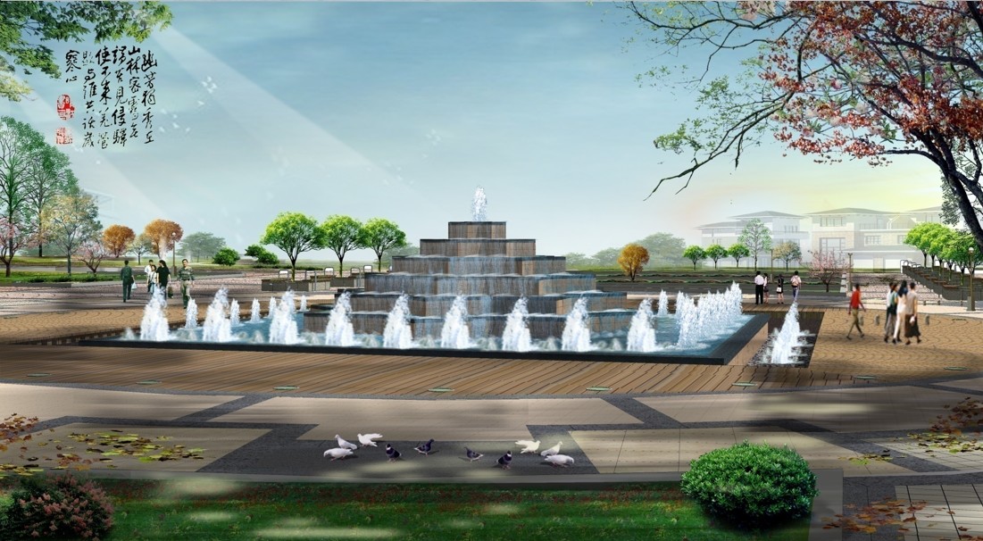 在設計總體布局中尊重場地現狀,環境上以“一軸一環一帶,五區十景”為景觀骨架。通過對基地特征的挖掘分析,運用現代景觀設計與中國傳統造園手法,汲取江南園林的景觀精髓,師法自然,疊山理水,達到“雖由人作,宛自天開”的境界,從整體意象上構成了一湖一溪一島的水體景觀框架。該項目將古典園林造園手法與現代結合,形成了中國園林特有的山水格局,形成了宜人并充滿活力的景觀空間。
