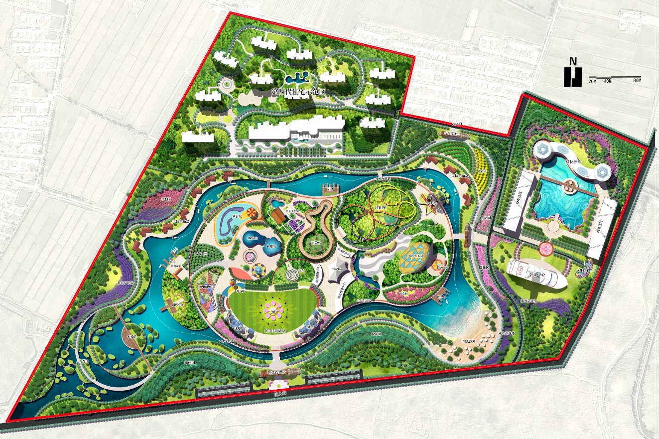 打造融旅游、度假、居住為一體的東北“理想人居”度假區。同時將建筑與景觀作為大地的一部分來理解和看待。場地分為住宅、生物棲息地、主題樂園、商業配套四個區域,做到具備經濟性、實用性及社會性的景觀統籌。