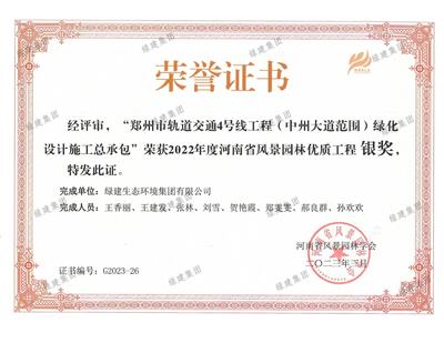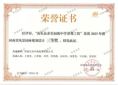 2023年度河南省風景園林科技進步獎三等獎