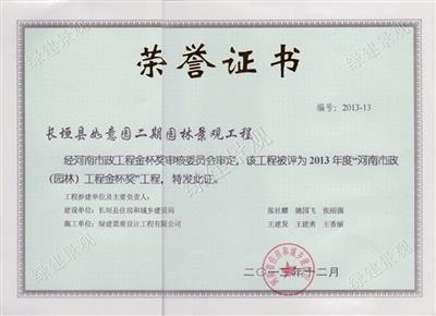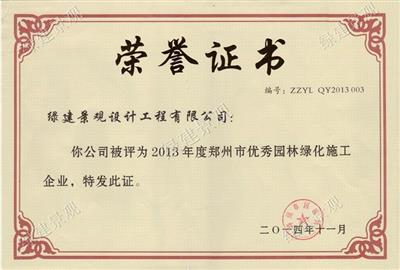2013年度鄭州市優(yōu)秀園林綠化施工企業(yè)