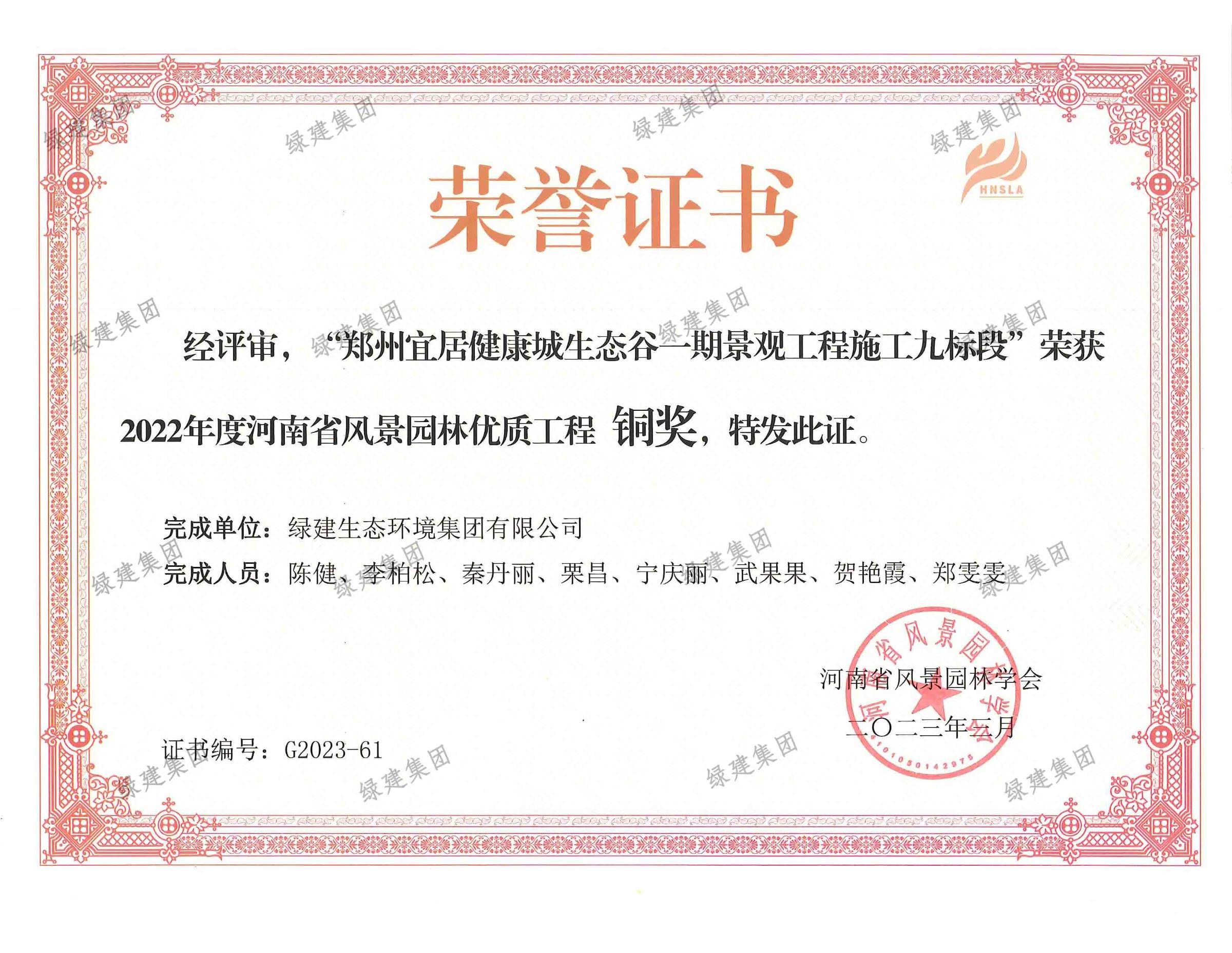 22年度宜居健康生態(tài)谷優(yōu)質(zhì)工程獎(jiǎng)-銅獎(jiǎng)
