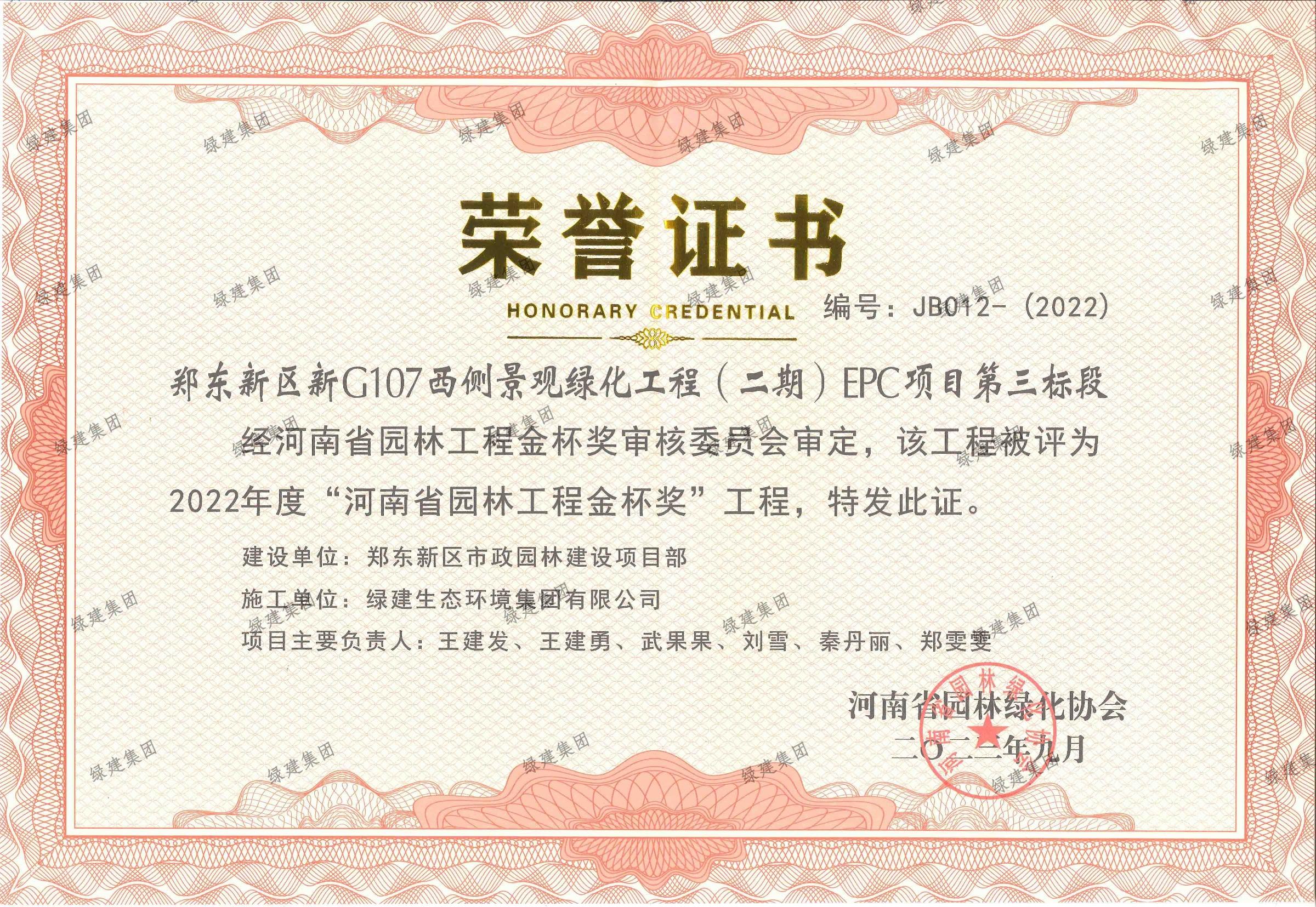 2022年度河南省園林工程金杯獎(jiǎng)-鄭東新區(qū)G107西側(cè)景觀綠化工程