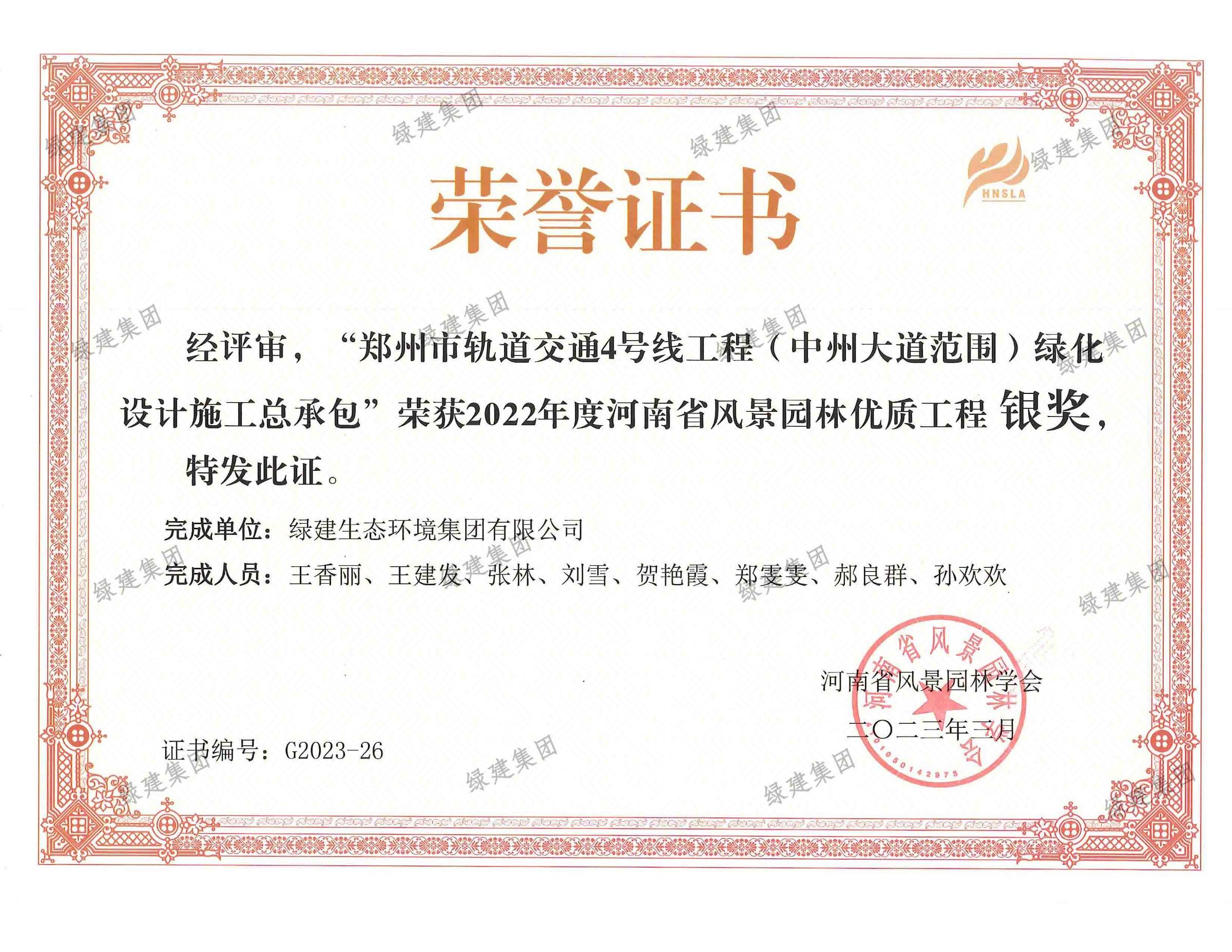 2022年度交通4號線設計施工總承包優質工程-銀獎