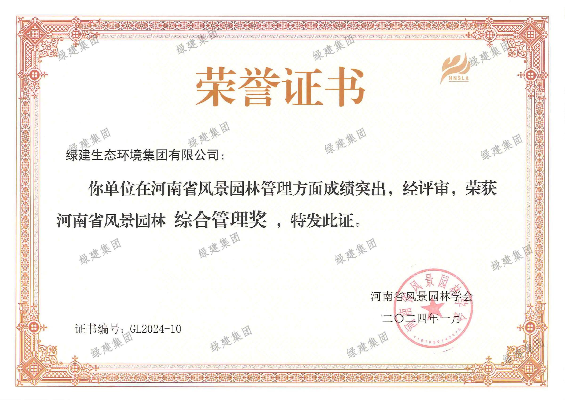 2024-2025年度河南省園林綠化協(xié)會AAAAA誠信企業(yè)