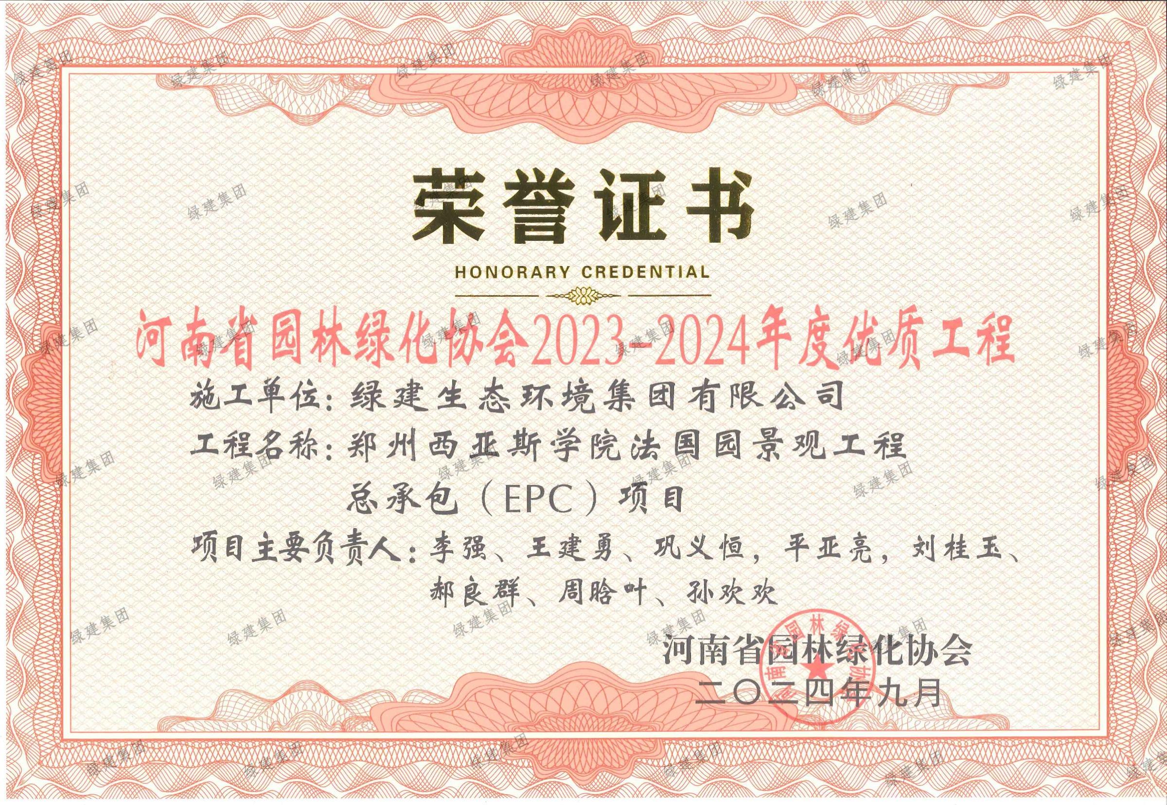 2024-2025年度河南省園林綠化協會AAAAA誠信企業