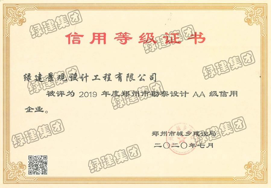 2019年度鄭州市勘察設(shè)計AA級信用企業(yè)