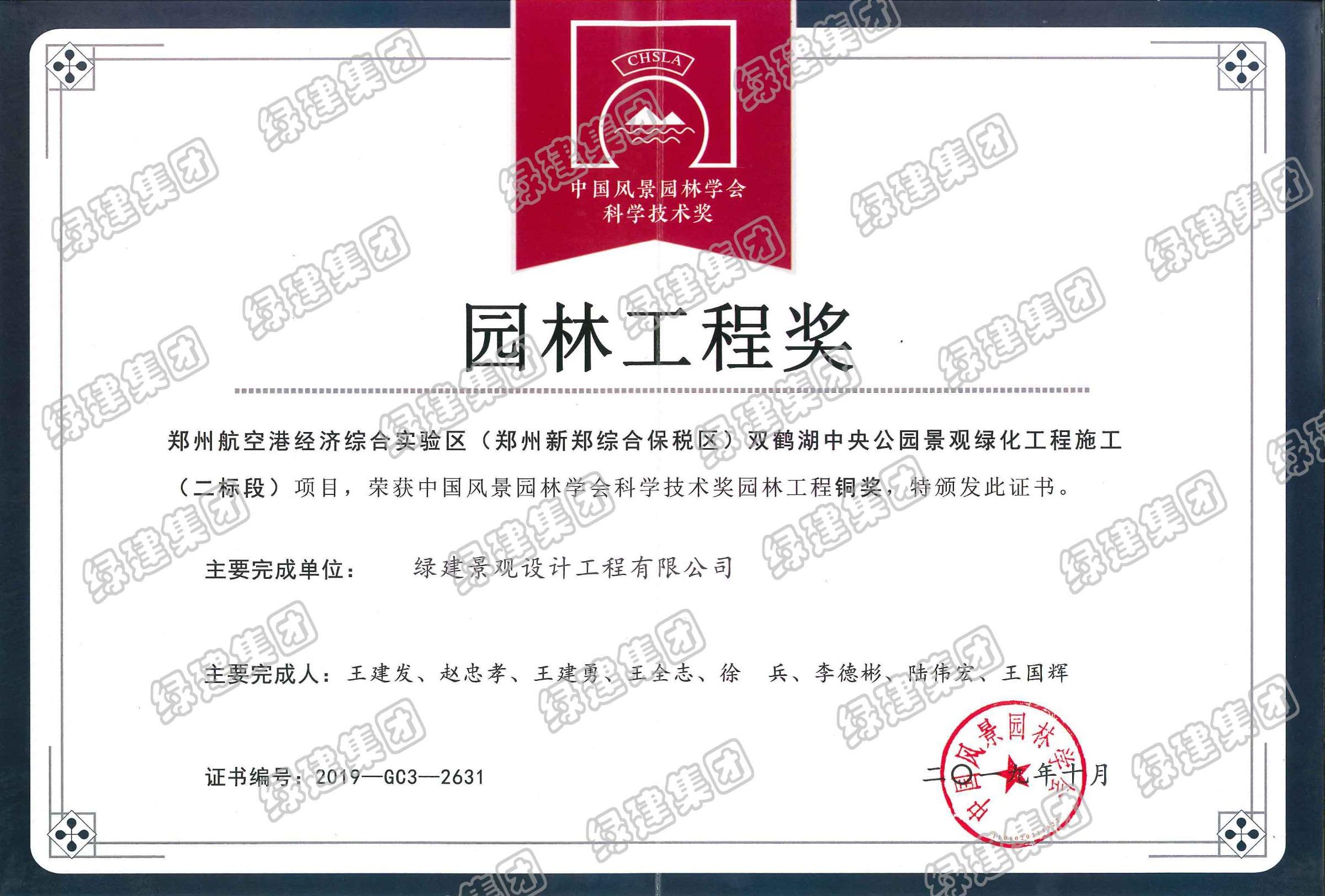 雙鶴湖二標榮獲中國風景園林學會科學技術獎園林工程銅獎