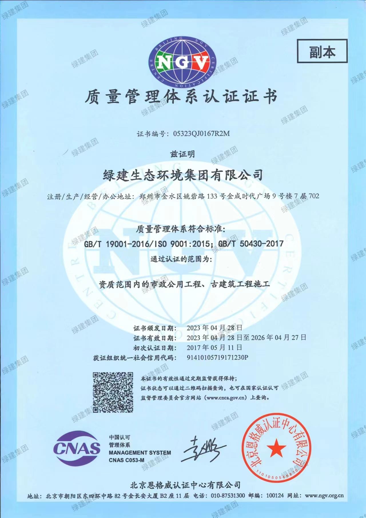 質(zhì)量管理體系認(rèn)證證書(shū)(施工)