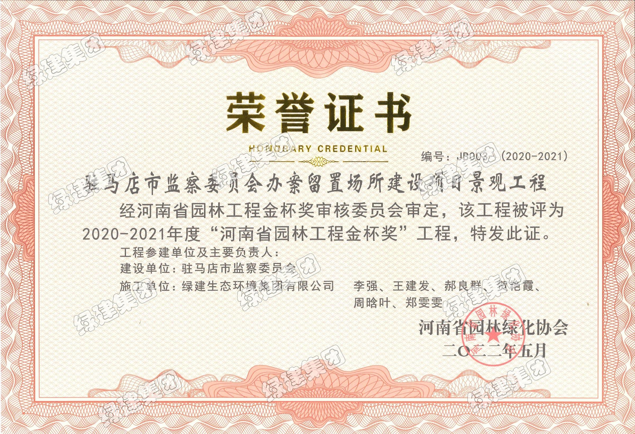 駐馬店市監察委員會辦案留置場所建設項目景觀工程——2020-2021年度河南省園林工程金杯獎