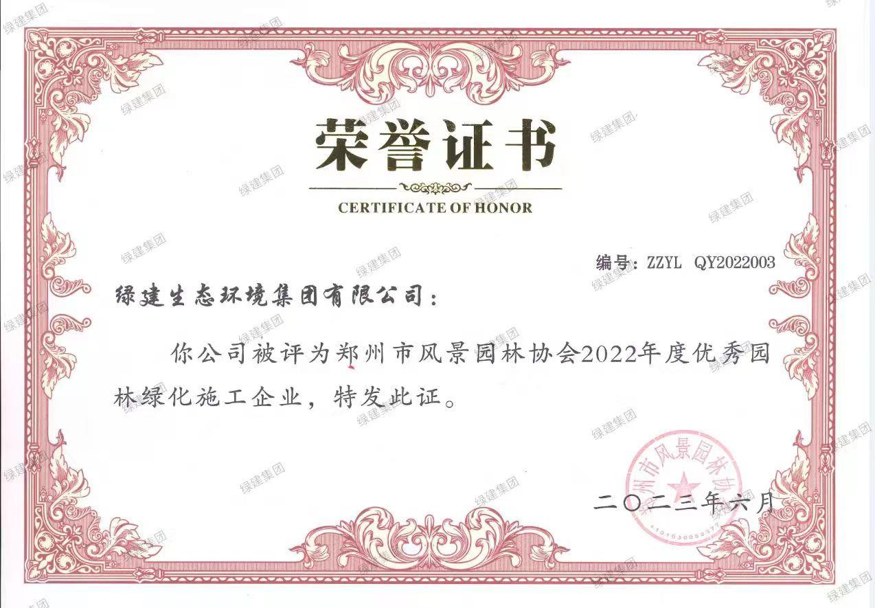 2022年度鄭州市風(fēng)景園林協(xié)會優(yōu)秀園林綠化施工企業(yè)